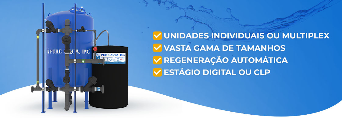 Os amaciantes de água industriais da Pure Aqua tratam a água por removendo dureza usando resina. A resina substitui a dureza da água com sal que é regenerado periodicamente. A água amaciada pode então passar por um sistema RO para remover o sal sem o risco de incrustar. Os amaciantes podem ser usados em uma variedade de serviços, incluindo: aplicações industriais, municipais e institucionais.