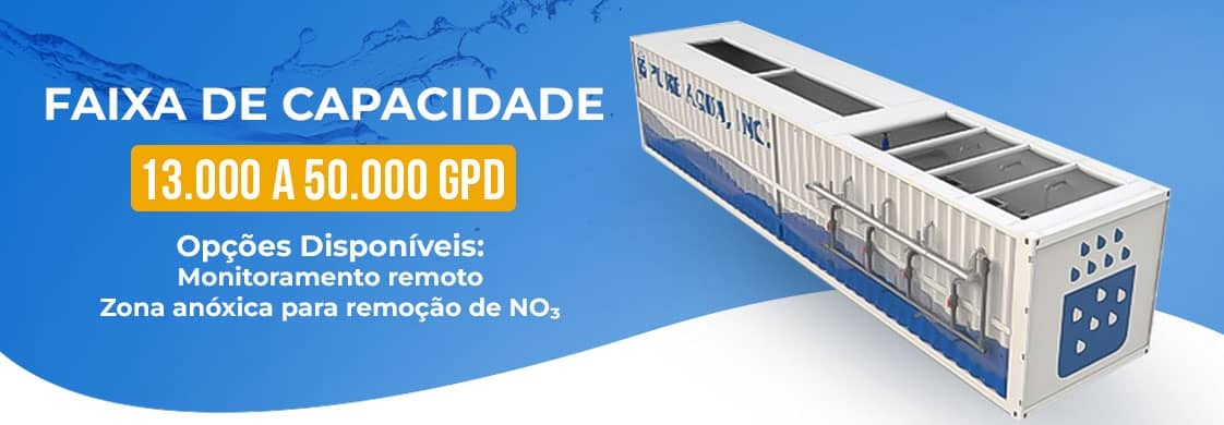 - A concentração de sólidos suspensos em licor misturado alto (MLSS) e a taxa de carga volumétrica se traduzem em pegada compacta.